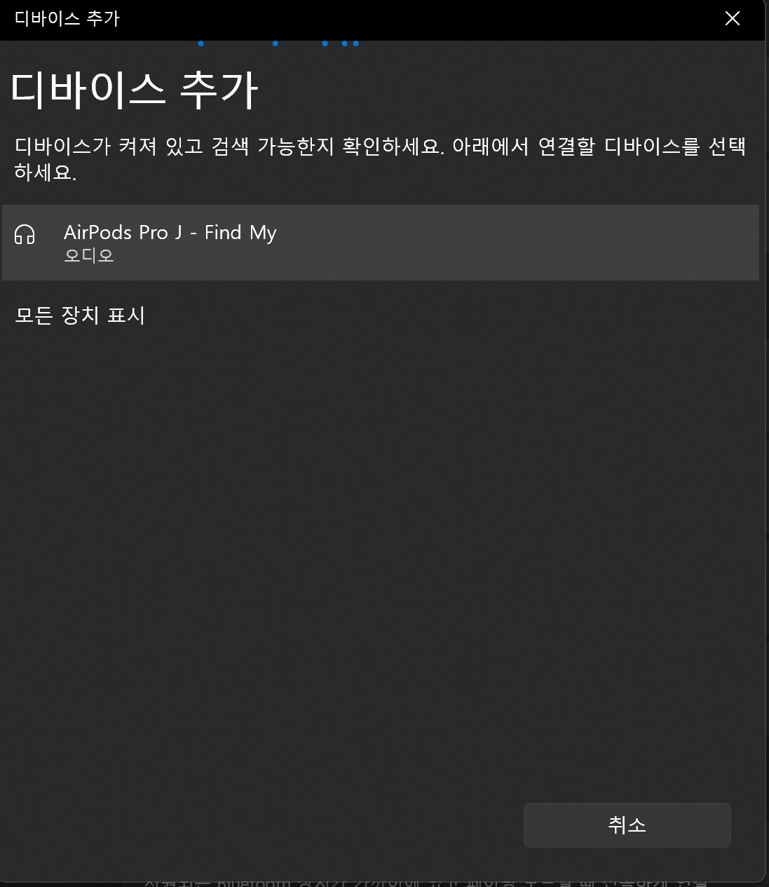 반대로, 아이폰에서 에어팟을 사용하다가 윈도우PC로 전환하려면 아까 위에서 보신 메뉴인 bluetooth 및 기타 장치 설정에 들어가셔서 다시 페어링을 해 주어야 하는 불편함이 있긴 합니다.