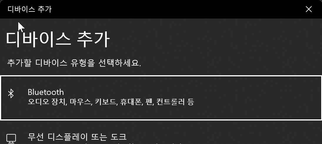 4. 그러면 어떤 유형의 블루투스 장비를 추가할 것인지 묻는 화면이 나옵니다.